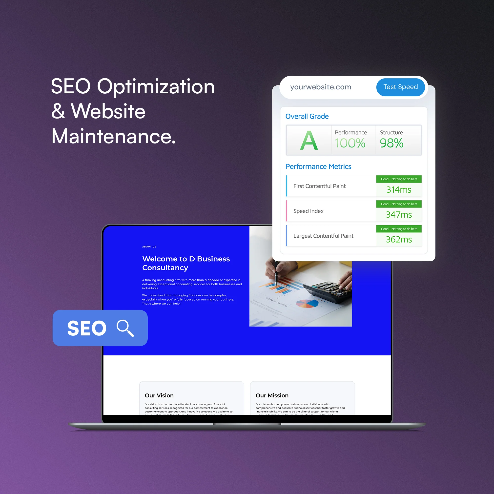 I help keep your website at its best with ongoing maintenance and SEO optimization. From fixing technical SEO issues to ensuring fast loading speeds and regular updates, I make sure your site stays secure, optimized, and ready to rank higher.